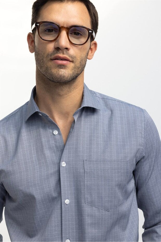 Chemise grise Tudors Classic Fit à manches longues et col cravate en coton fin rayé
