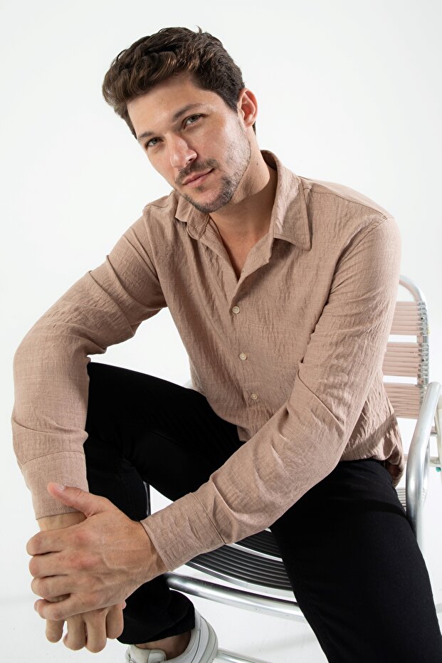 Chemise oversize en lin texturé gris fumé pour homme YXC Trend Maker